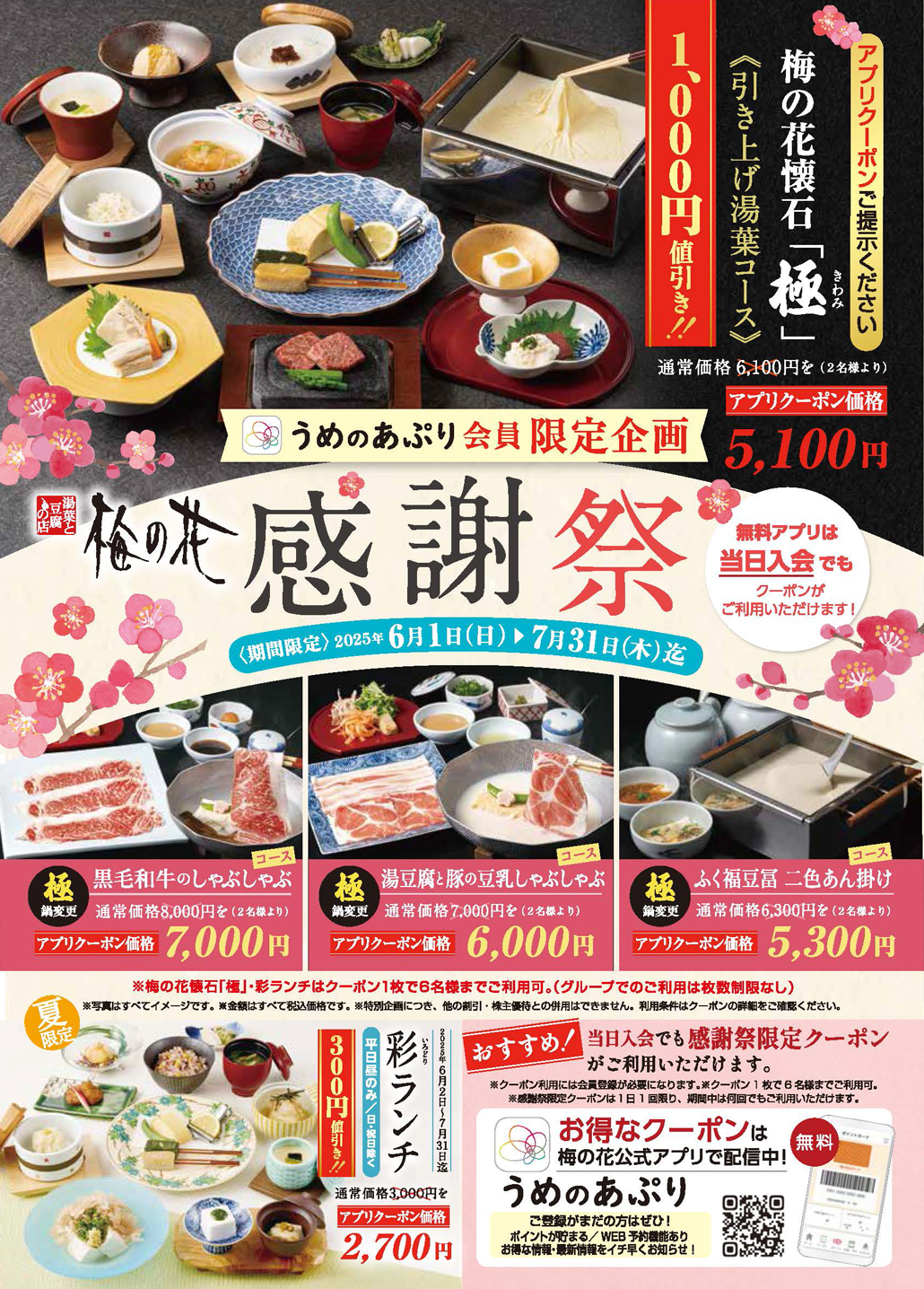 こころが躍る、「うめのあぷり」(無料)の会員限定企画です!