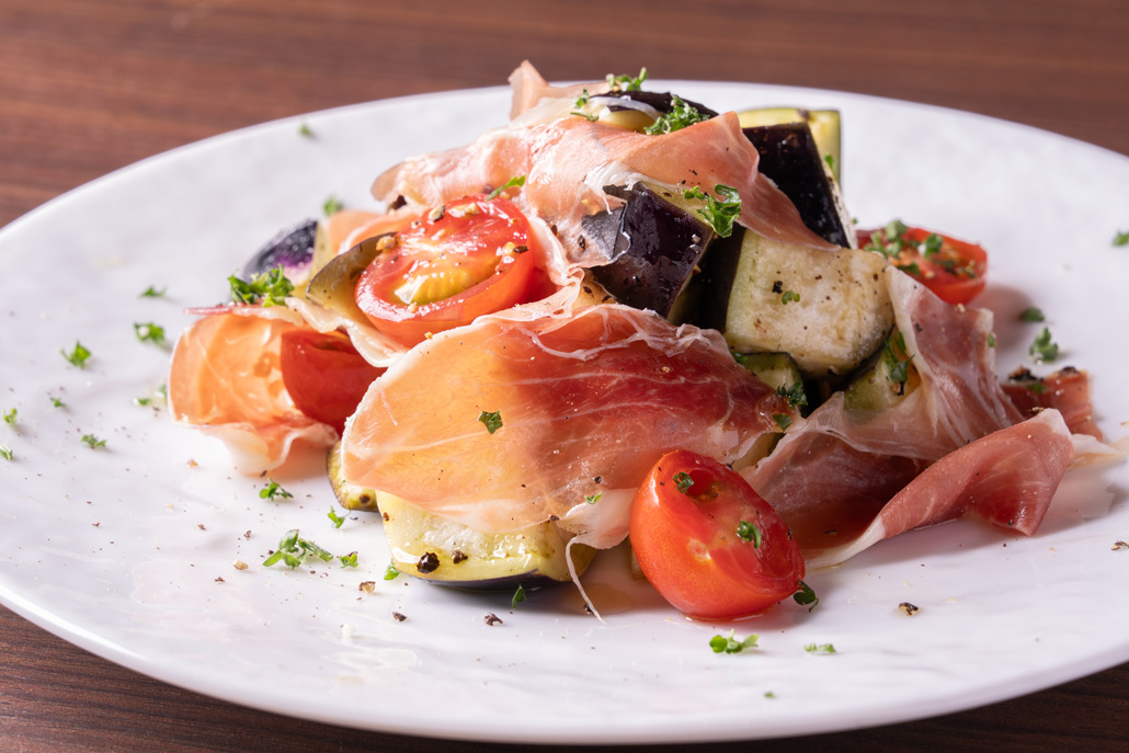 生ハムの塩気×水ナスの甘さのバランスを楽しめる、計算されたひと皿です!