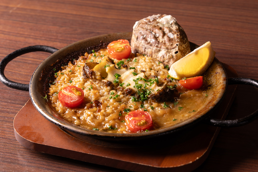 それから最後にご紹介するのは、「アワビの肝バターパエリア」。(写真はSサイズです。)