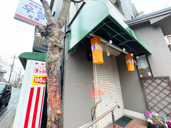 近鉄「富野荘駅」駅前(京都府城陽市枇杷庄島ノ宮)の店舗に、「韓食堂」「友情」って書かれた看板が付いています!