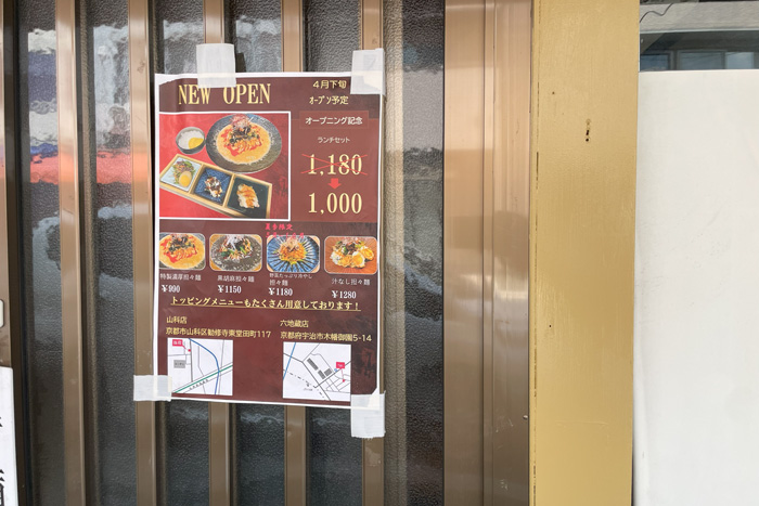 「山科店」(京都府京都市山科区勧修寺東堂田町117)もあるお店で、こちらは「六地蔵店」になるようです。