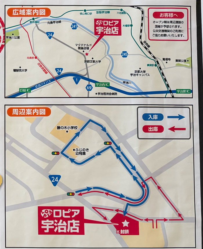※チラシに「オープン時は周辺道路の混雑が予想されます。公共交通機関のご利用にご協力お願いいたします。」と記載がありました。