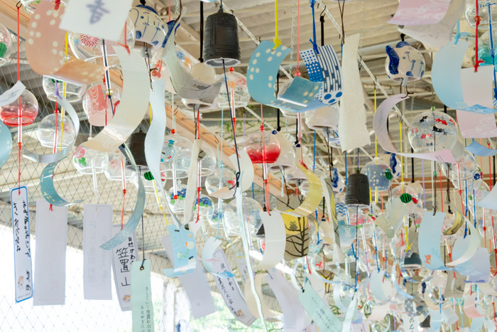 駅のホームには涼しげな趣の風鈴がずらり!